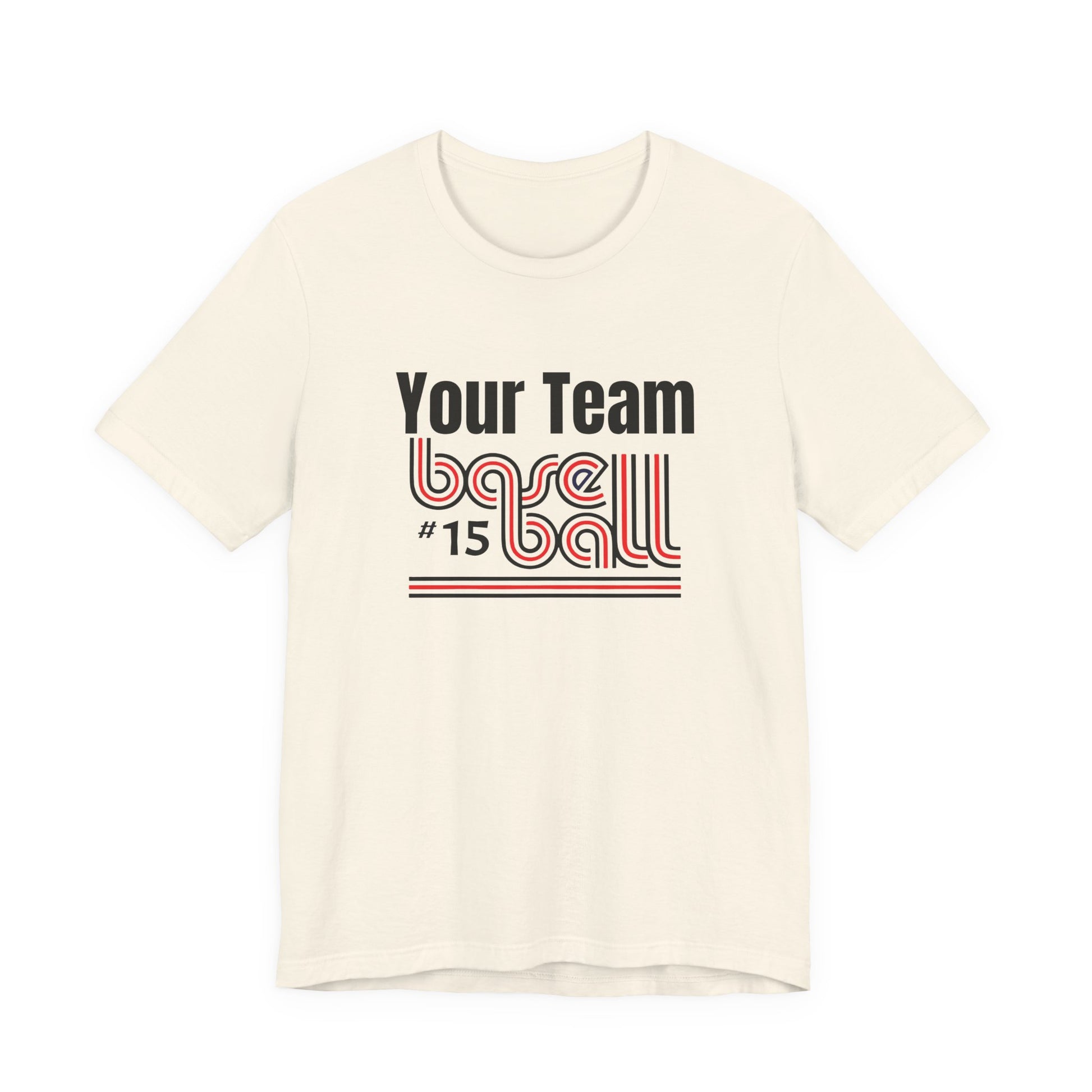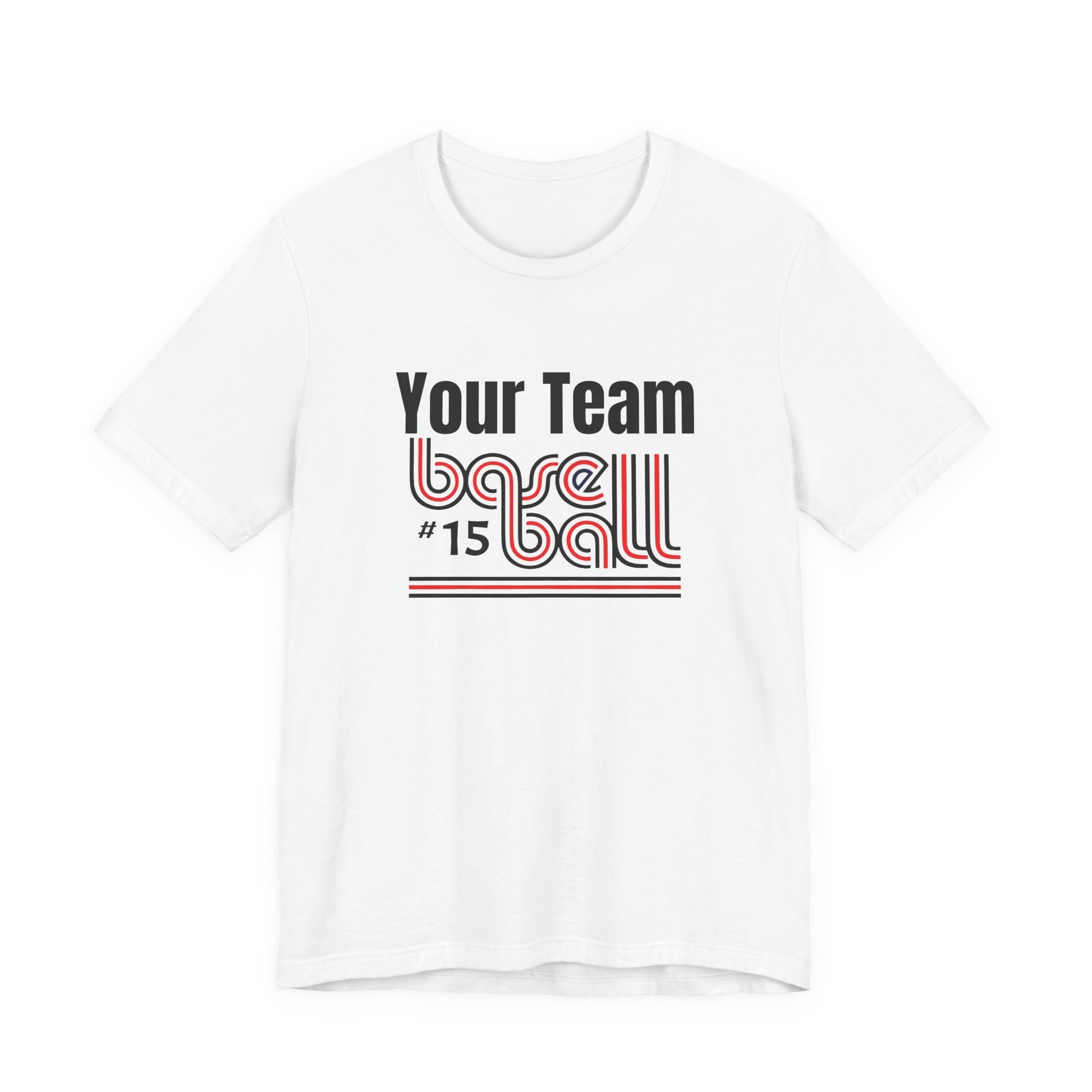 Custom Team-Name Jersey Tee — Red & Black Retro Line Design